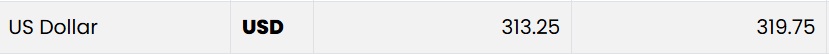 People’s Bank reports the buying rate of the US Dollar has increased from Rs. 312.36 to Rs. 312.86, while the selling rate has also increased from Rs. 319.25 to Rs. 319.76.