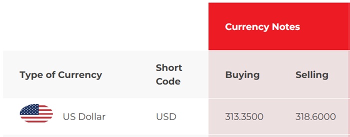 According to Seylan Bank, the buying and selling rates of the US dollar have increased from Rs. 312.65 to Rs. 313.35 and from Rs. 317.90 to Rs. 318.60, respectively.