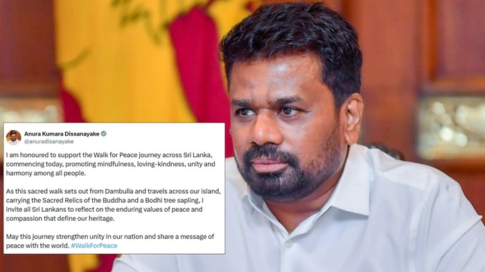 President Anura Kumara Dissanayake has extended his support to the Walk for Peace pilgrimage, which commences today in Sri Lanka, highlighting its role in promoting mindfulness, loving‑kindness, unity, and harmony among all people.