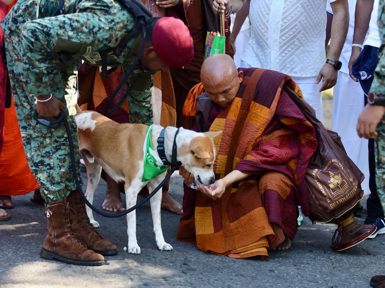 Speaking during a meeting attended by K. D. Lalkantha, the officer said “Aloka the Peace Dog,” the certified service canine accompanying the procession from Dambulla, became unwell and received treatment after heavy crowds and disruptions along the route yesterday.