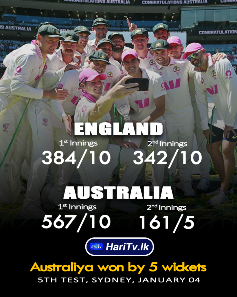 Australia sealed a memorable 5-wicket win against England in the 5th Test at Sydney on January 4, completing a strong all-round performance. After posting a massive 567 in their first innings, Australia successfully chased the target in the second innings, finishing at 161/5. England managed scores of 384 and 342, but Australia’s dominance with both bat and ball proved decisive in the series finale.